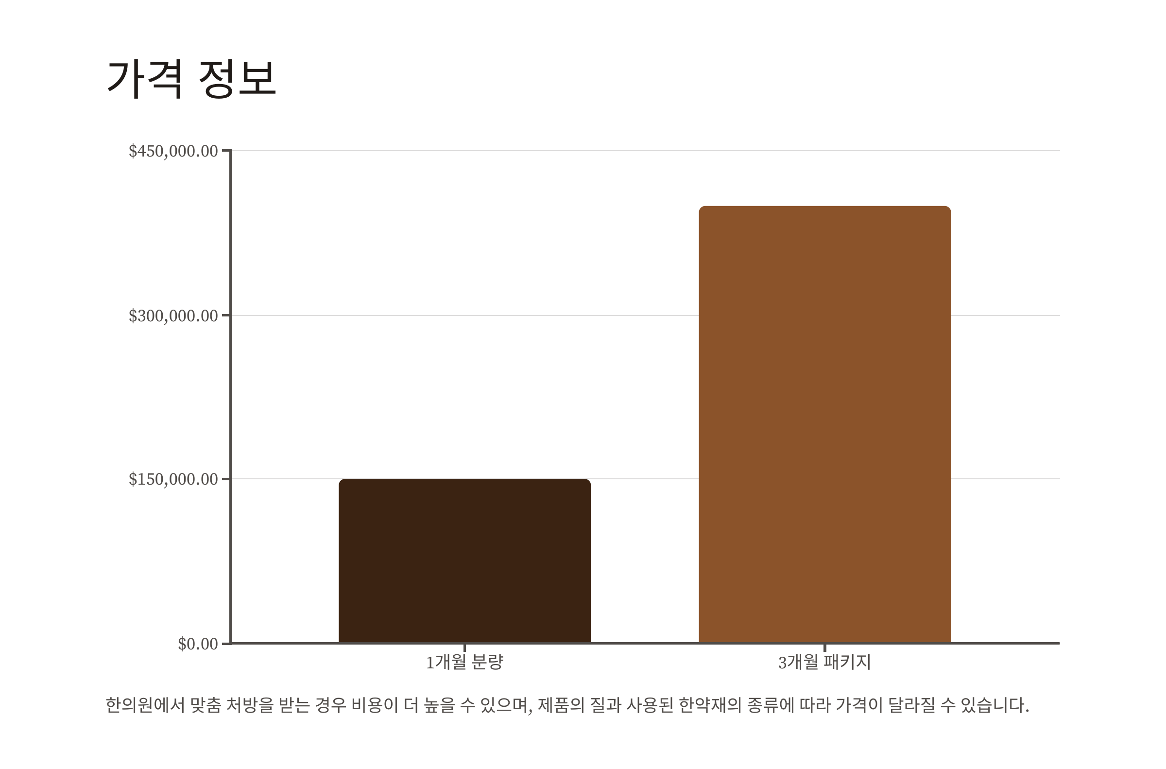 한의원에서 맞춤 처방을 받는 경우 비용이 더 높을 수 있으며, 제품의 질과 사용된 한약재의 종류에 따라 가격이 달라질 수 있습니다.