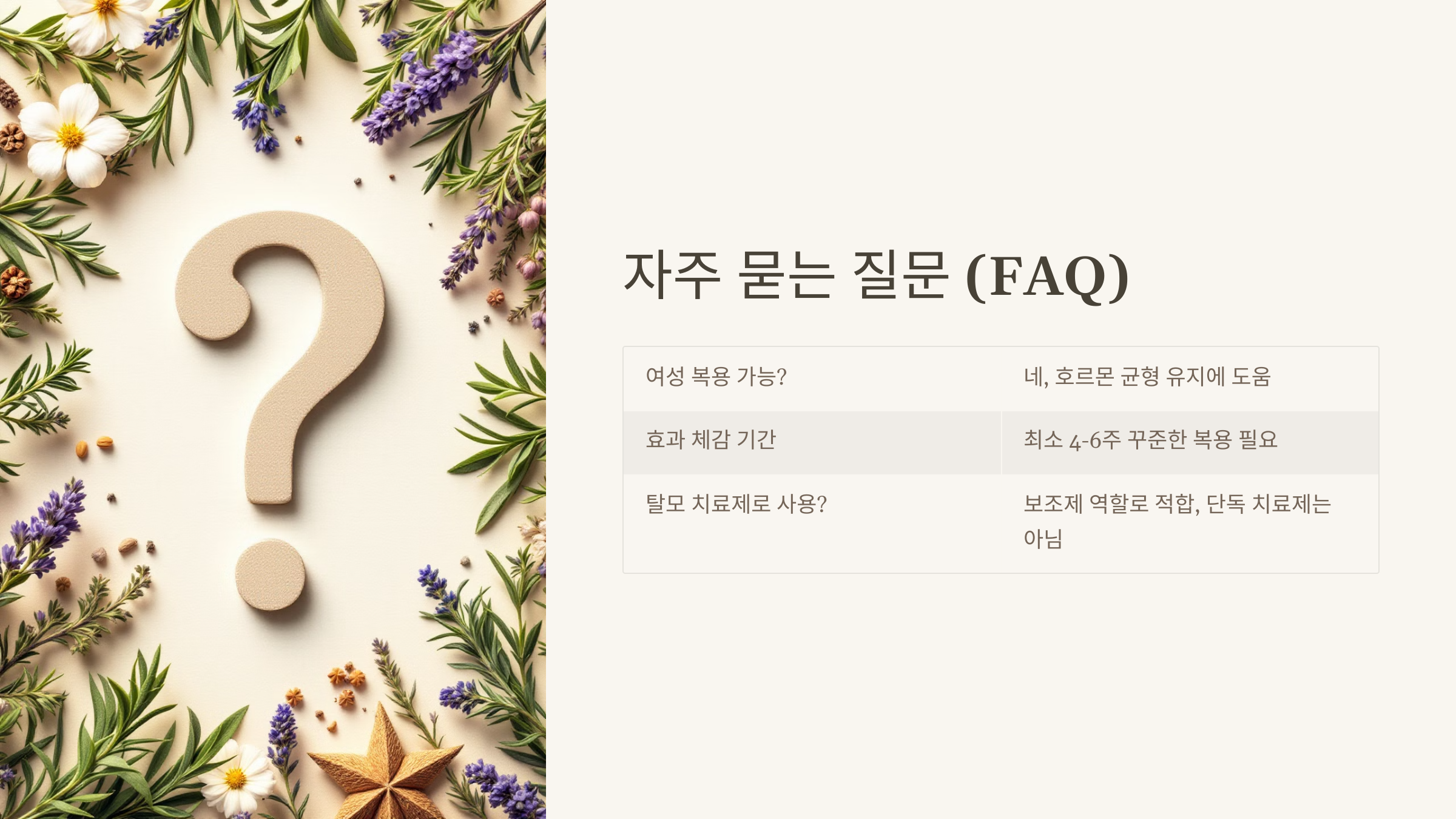 - 특히, 다낭성 난소 증후군(PCOS)과 같은 호르몬 불균형 질환 개선에 유용합니다.