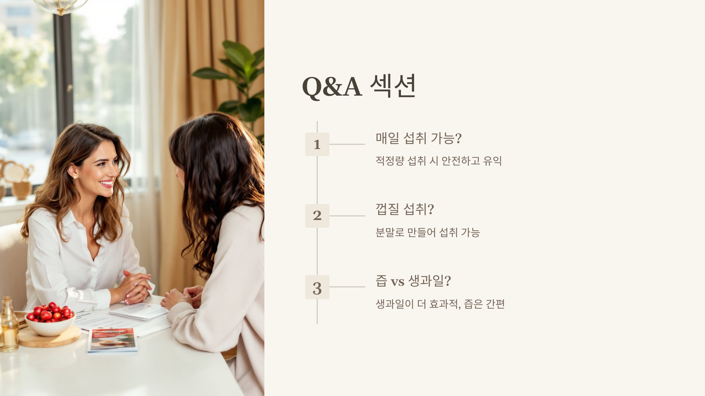 Q3: 석류즙과 생과일 중 어느 것이 더 효과적인가요?